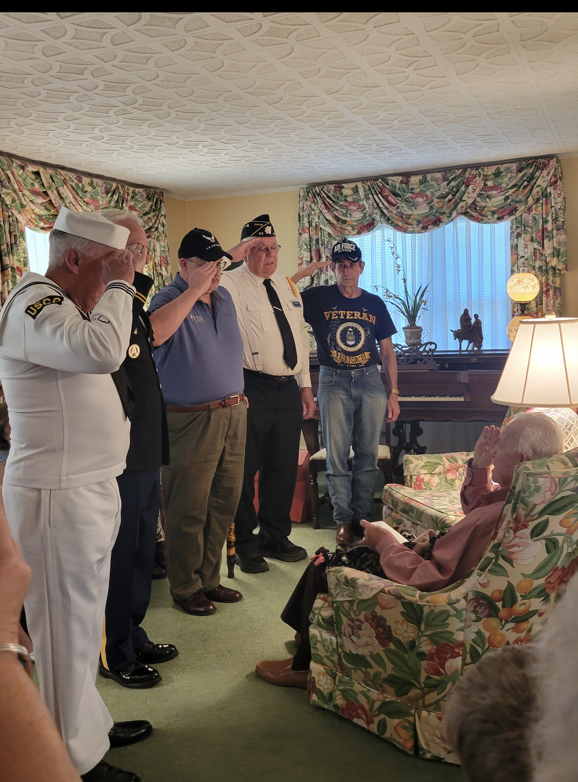 Hats and lap blankets are military branch specific.